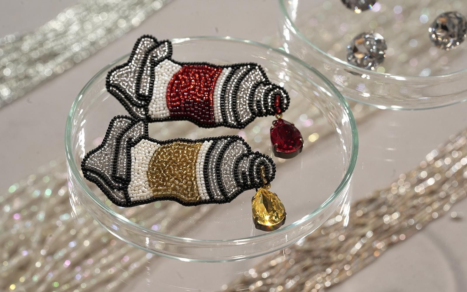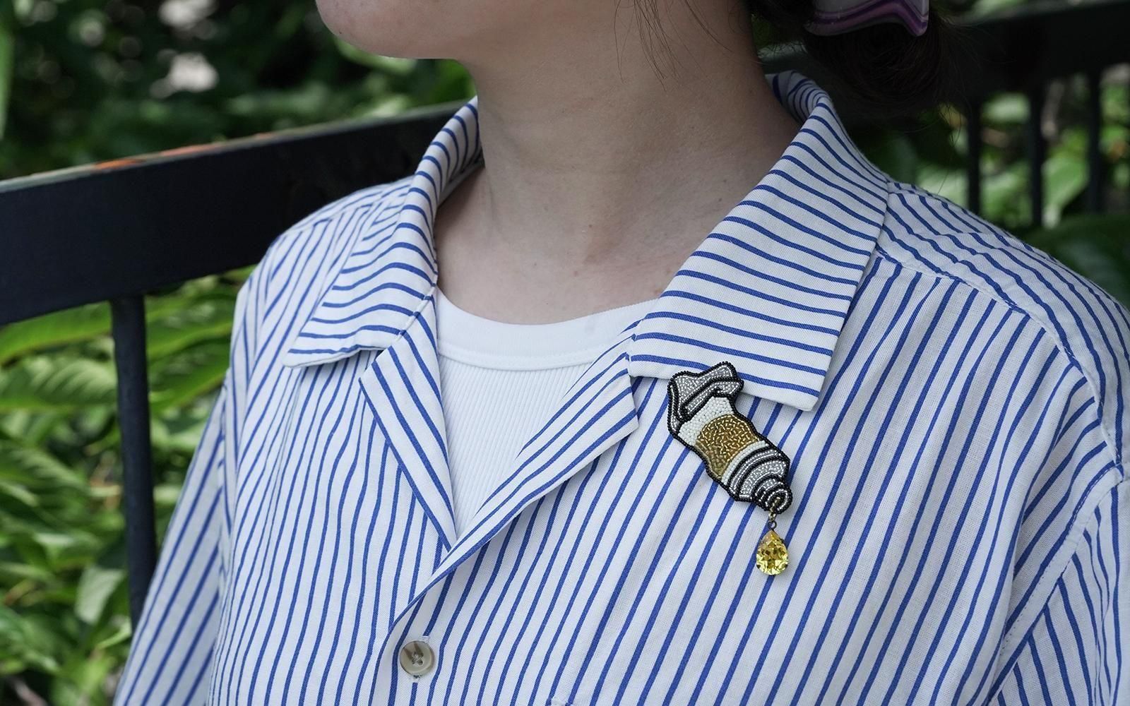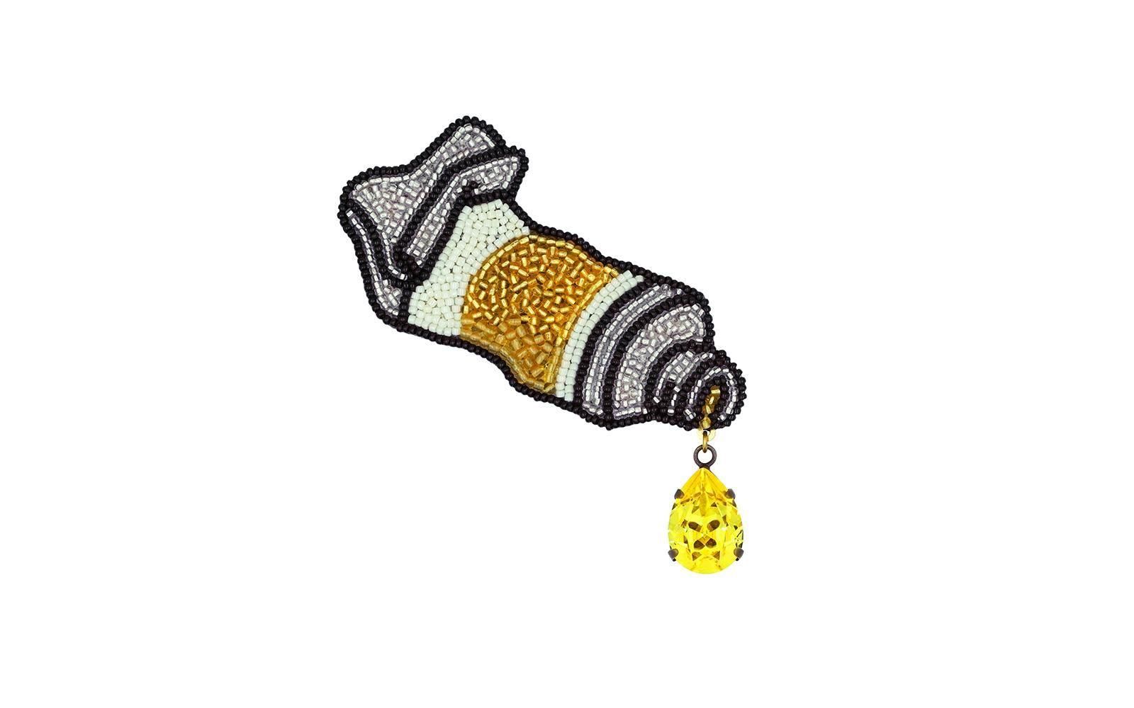 一度廃盤になってしまった絵の具ブローチがビーズを変えて復活しました。 絞り出されたチューブの先からは、きらっと輝くスワロフスキーが揺れ動きます。