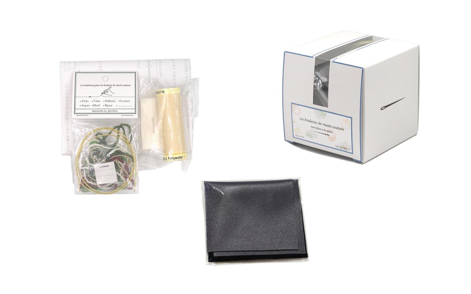 キットには生地・パーツ・針・糸・説明書・完成写真が入っているので ご購入後すぐに作り始めて頂けます。(※オーガンジーのような薄い生地と、刺繍枠はついておりませんが、適した刺繍枠を道具ページにて販売しております) 縁取りに使用するフランス製ゴールドコイルは色や太さに個体差がありますのでご了承ください。 このキットはより多くの方に作ってもらえるように、クロッシェ(かぎ針)を使わない刺繍だけでできる仕様になっています。 具体的には、なみ縫いと巻縫いができれば大丈夫です。 ※材料が入っている容器が缶からボックスに変更になりましたので、予めご了承ください。