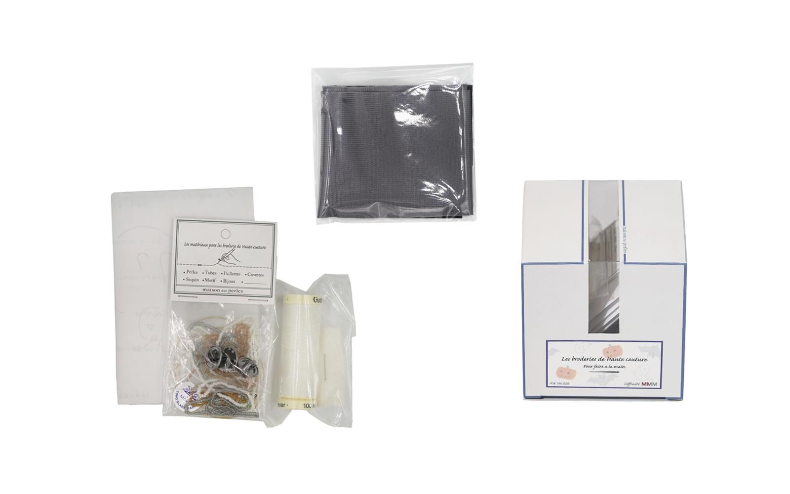 キットには生地・パーツ・針・糸・説明書・完成写真が入っているので ご購入後すぐに作り始めて頂けます。 (※オーガンジーのような薄い生地と 刺繍枠はついておりませんが、適した刺繍枠が道具ページにて販売中です) 縁取りに使用するフランス製ゴールドコイルは色や太さに個体差がありますのでご了承ください。 このキットはより多くの方に作ってもらえるように、クロッシェ(かぎ針)を使わない刺繍だけでできる仕様になっています。 具体的には、なみ縫いと巻縫いができれば大丈夫です。