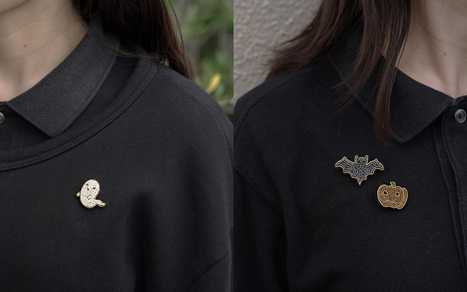 maison des perlesオリジナル刺繍キット2022年秋から販売開始。 オバケ、コウモリ、カボチャのピンズ3つがセットになった『ハロウィーンキット』です。 ビーズにはTOHOビーズとオリジナルで開発したMôkoビーズを使用しており クロシェを使わずに、セットとして入っている針でどなたでも刺繍していただけます。 簡単に作ることのできるこちらのキット プレゼントはもちろん、自分へのご褒美にもぴったりです! バランスよく配色されたピンズは3つ一緒につけても素敵ですのでコーディネートを楽しんでください。
