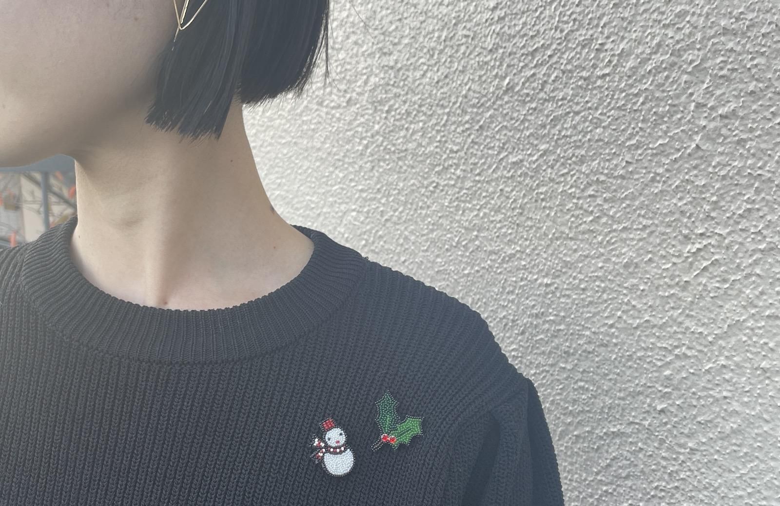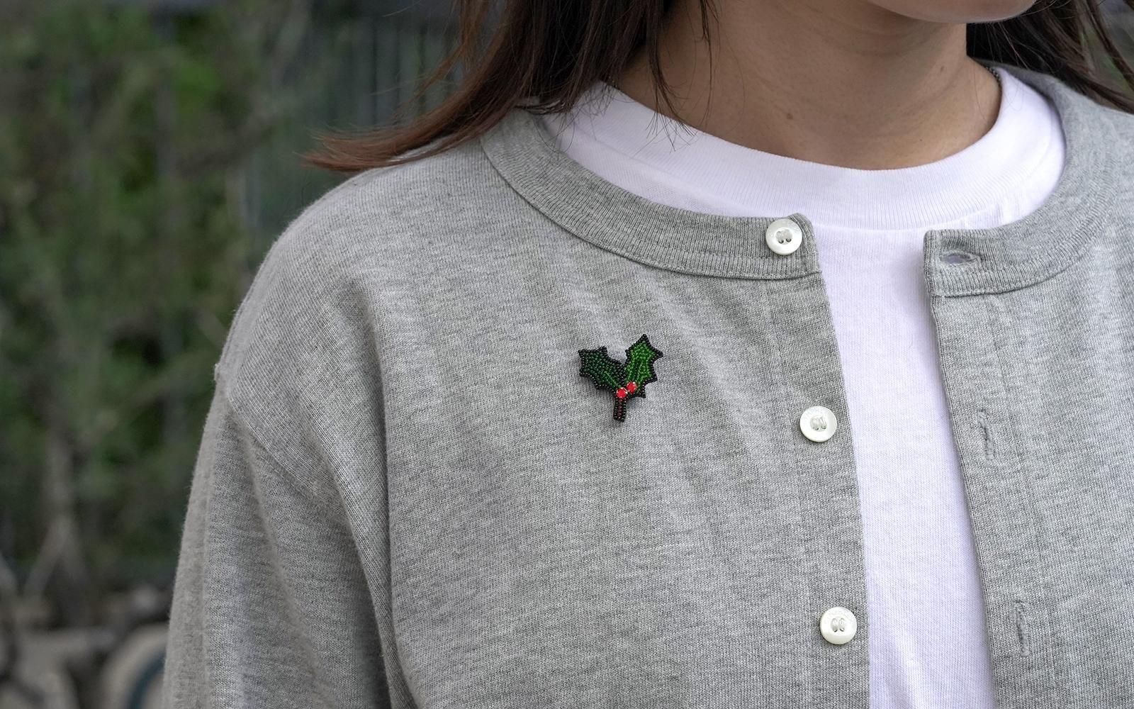 冬季限定、ヒイラギPINの登場です! ポイントとなる赤い実をスワロフスキーで表現しています。 雪だるまやツリーなど、季節のPINSと組み合わせても素敵です。