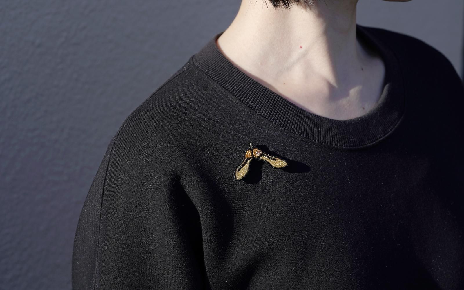 「種の旅シリーズ」から、カエデの種の登場です。 プロペラ状の羽を持ち、熟すと2つに分かれ回転しながら風に乗り遠くへ飛んでいきます。 風のブローチと組み合わせてつけるのもおすすめです!
