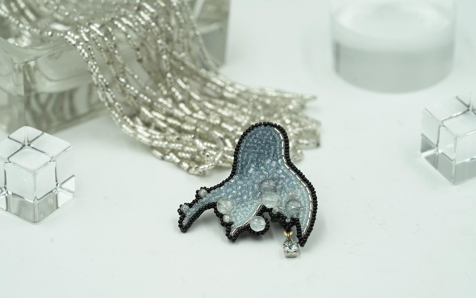 2024年12月ギャラリードゥポワソンで行われた Môko Kobayashi Exhibition『N’ existe pas? 〜存在しない?〜』にて発表。 ゆれるスワロフスキーとビーズの色で表現したグラデーションが印象的なブローチです。